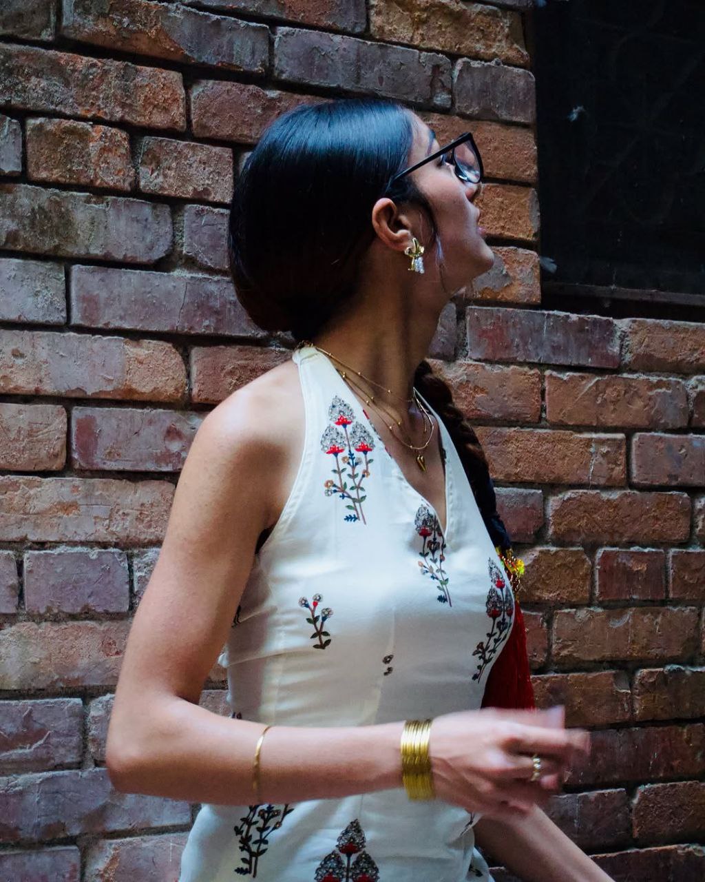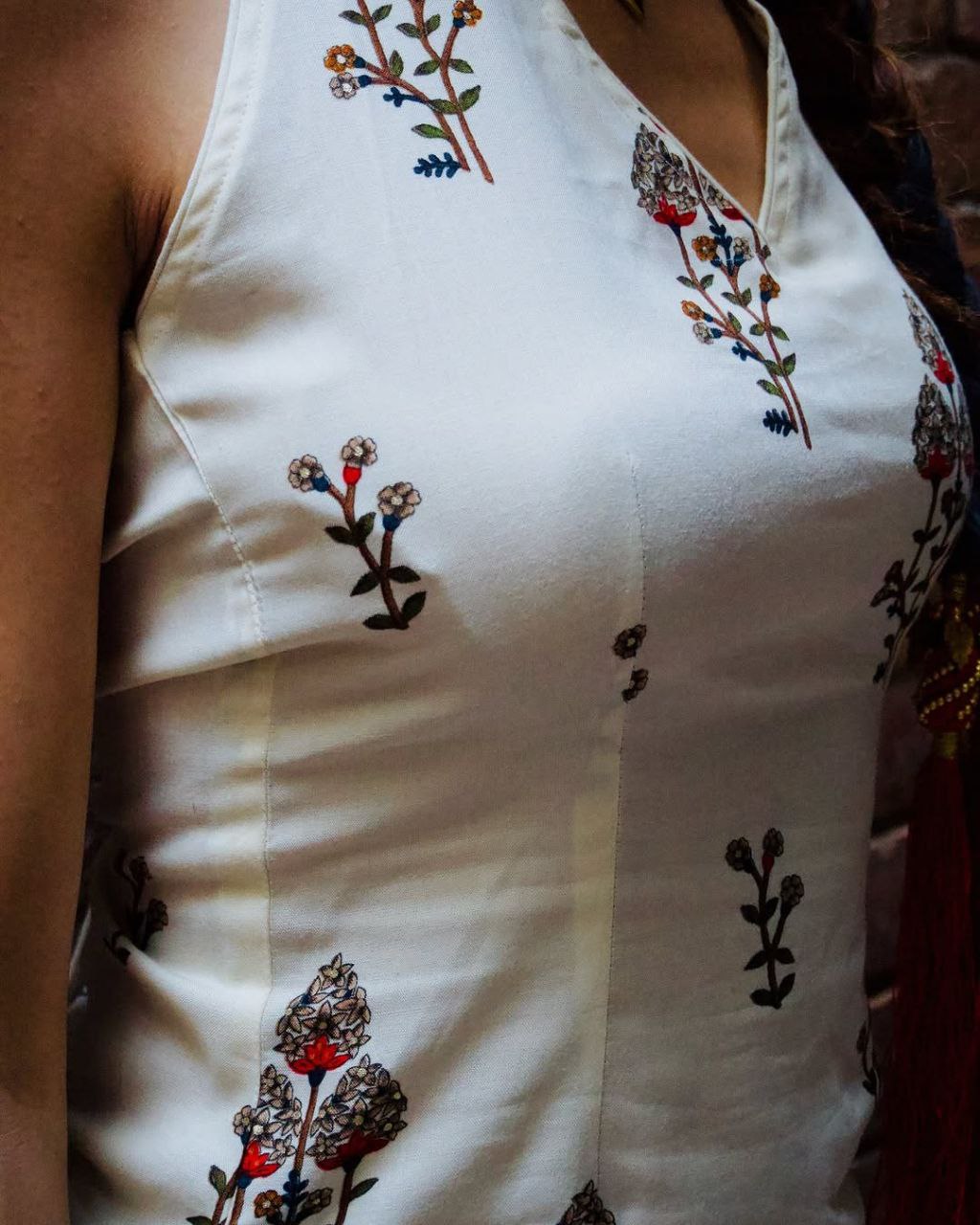 Introducing Effortlessly elegant Simran halter-neck kurti combines breathable, lightweight fabric likely cotton or cotton-linen blend with a flattering halter neckline that ties at the nape, leaving the upper back gracefully exposed. The sleeveless design and mini length make it ideal for balmy days or destination outings, while the soft cotton fabric ensures breathability and comfort in tropical weather.